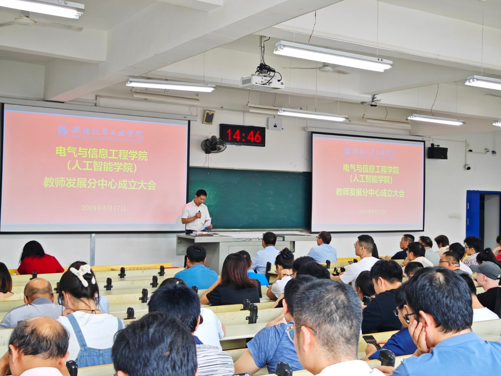 本网讯(文/图 卢言)6月17日下午,电气与信息工程学院召开教师发展分中心成立大会,学校本科教学督导毛高波教授、阎菲教授、教师发展中心郭一鸣教授、电气与信息工程学院党政领导班子和全体教职工出席大会,大会由副院长周学良教授主持。