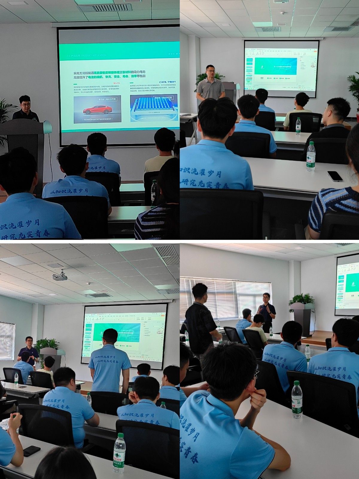 会前,我校师生一行参观了宇浩研究院,听取了产品生产环节介绍。李功臻以“新材料,新未来,容万物,润八方”为主题向大家介绍了万润新能源的基本概况、产品技术及未来规划等;张传坤、何鑫就联合培养项目的背景意义、培养模式、政策支持等做了具体介绍,现场还解答了学生一些疑问。