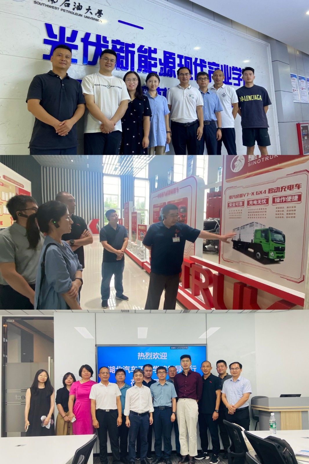 在访企拓岗活动中,学院分别走访了四川省汽车工程学会、西南石油大学新能源与材料学院以及中国重汽集团成都王牌商用车有限公司。在四川省汽车工程学会,听取了学会关于四川汽车行业的发展现状和未来趋势报告,双方围绕产学研合作、技术创新、就业实习等议题进行了深入探讨;数理与光电工程学院一行参观了西南石油大学光伏新能源现代产业学院、新能源实验室和研发中心,了解了新能源与材料领域的最新研究成果和技术应用,并就学科交叉、资源共享等议题进行了交流;28日上午,学院领导老师参观了中国重汽集团现代化的生产线,并围绕人才培养、毕业生就业实习、科研项目合作等方面进行了深入交流,达成了合作意向。