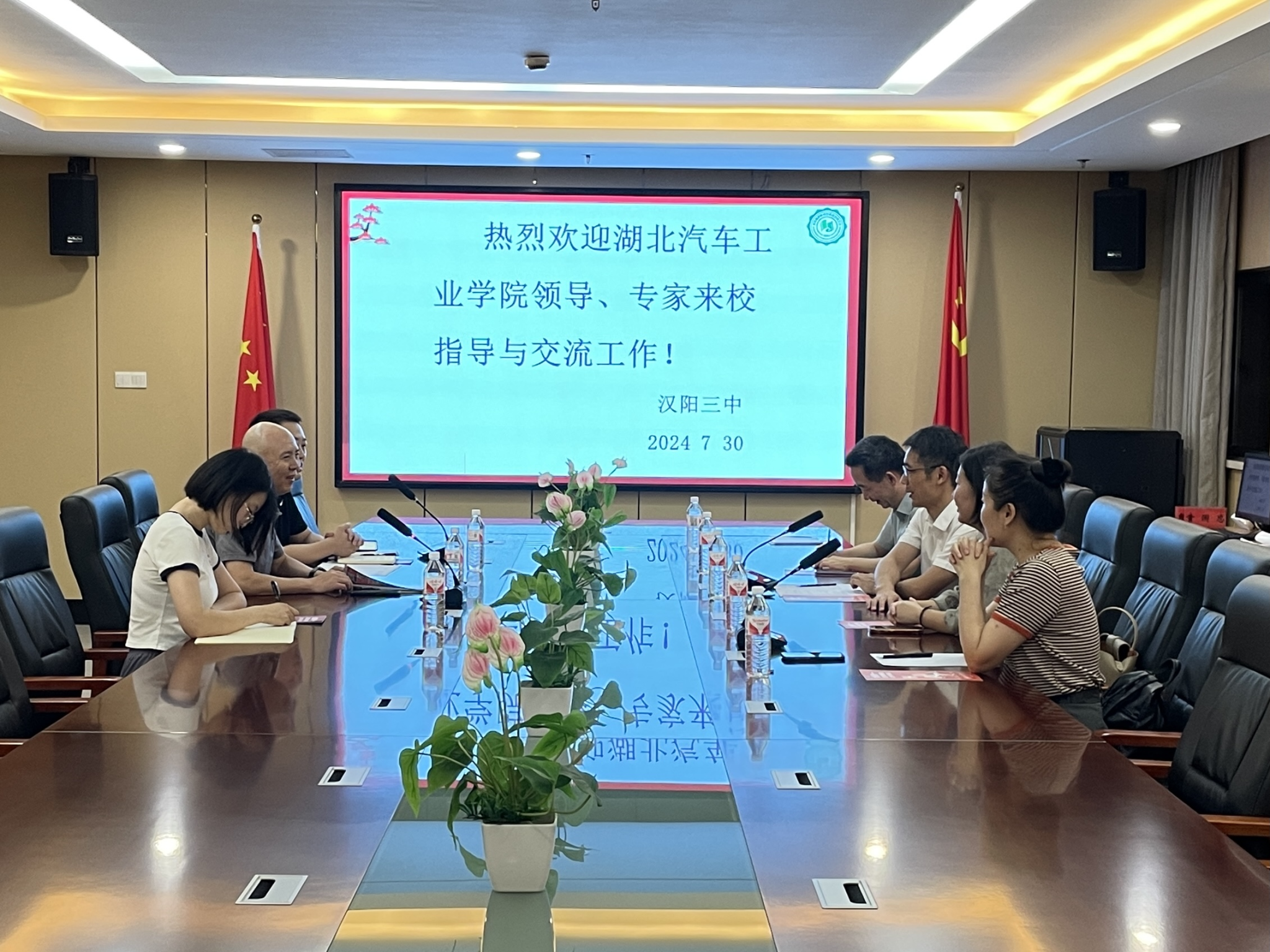 黄进涛就我校办学历史、优势特色以及近年来取得的办学成就进行了全面而深入的介绍。他表示,经开区是“车谷”,十堰市是“车城”,两校渊源颇深,通过优质生源基地的建设,将不断深化合作,共育优秀学子。黄进涛诚挚邀请汉阳三中领导老师和同学来校交流指导、参观研学。