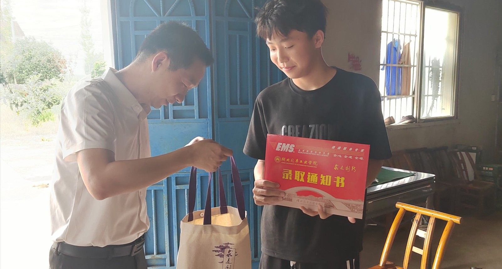 本网讯(文/图 张倍)“赵华扬你好!请查收你的录取通知书!”8月1日下午,汽车工程学院院长胡明茂、学校招生与就业处副处长刘荣、汽车工程学院分党委副书记周彬及2024级新生辅导员张倍一行4人,驱车450公里前往湖北省荆州市公安县斗湖提镇,将满载着荣誉与梦想的录取通知书,亲手送到我校今年在鄂录取最高分、汽车工程学院2024级新生赵华扬同学的手中。