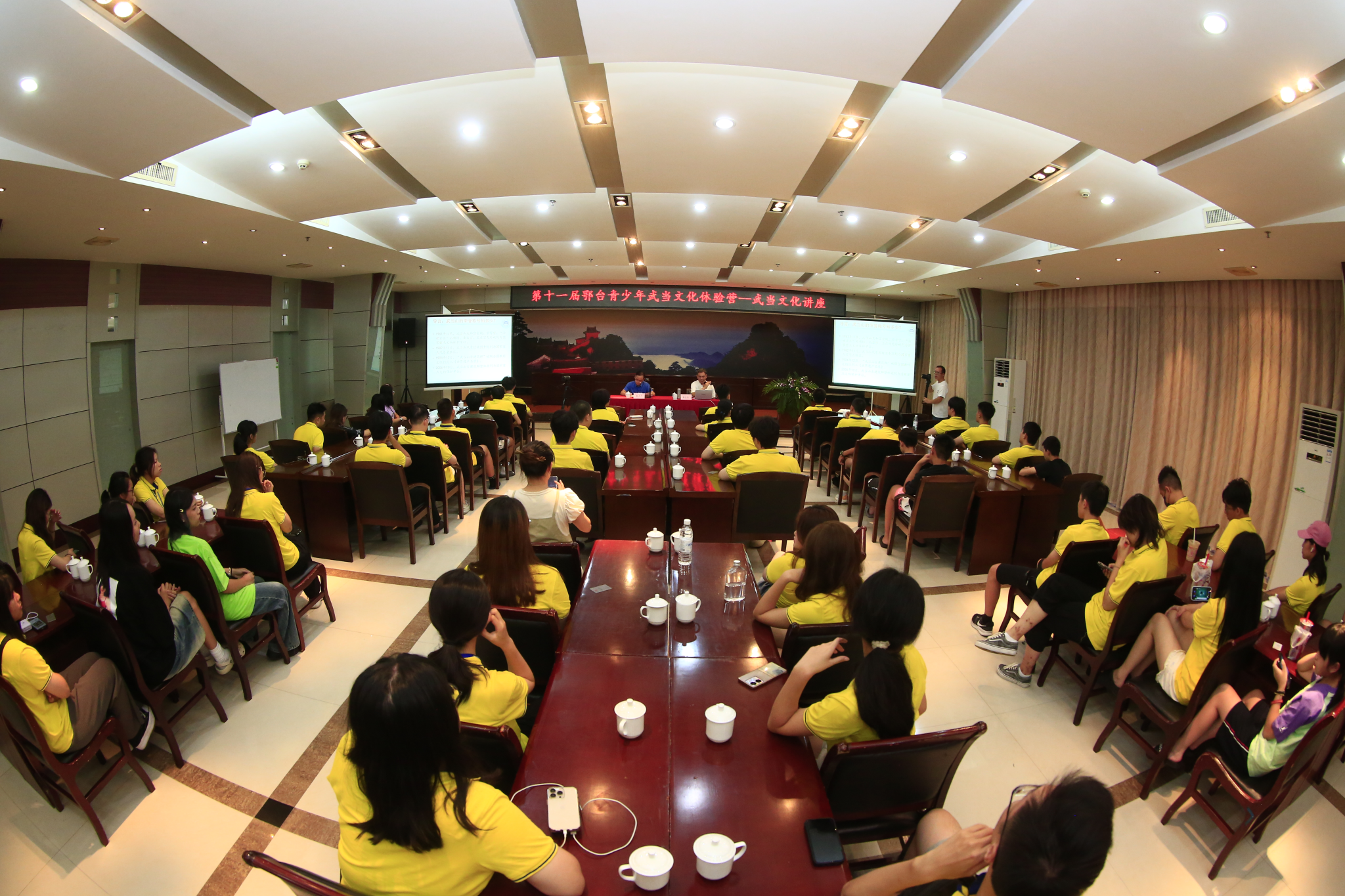 本网讯(文 张慧仙/图 范学峰)8月6日晚上,我校武当文化研究与传播中心主任杨立志教授受邀在武当山宾馆为第十一届鄂台青少年武当文化体验营的近百名青少年及随行老师、家长做主题为《烟霞金碧两氤氲——武当山古代建筑群欣赏》的学术讲座,讲座由武当山特区统战部副部长魏正久主持。