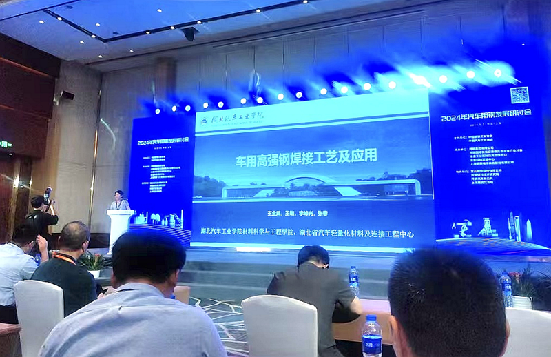 在汽车用钢发展研讨会上,王金凤做了《车用高强钢及超高强钢焊接工艺研究及应用》主题报告,介绍了目前车用高强钢国内外研究现状,以及团队成员基于车用高强钢焊接所做的研究工作及取得的进展,并向与会嘉宾宣介了学校。(审稿 杨陵郧)