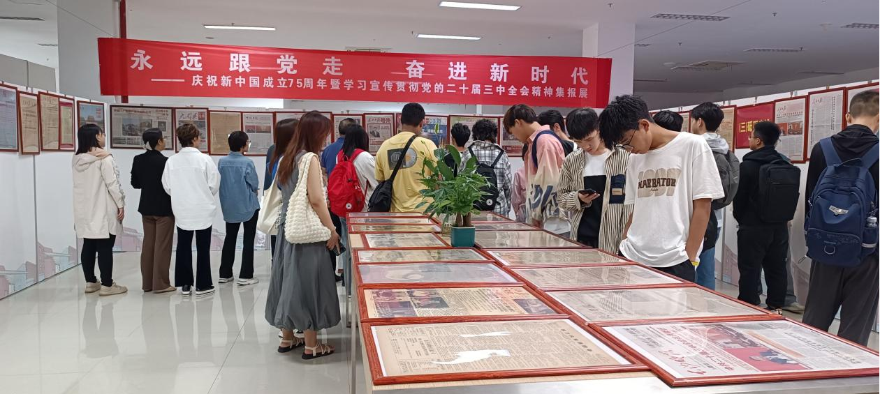 本网讯(文 何鹏/图 魏婧、朱晗誉、徐常燕)正是橘黄橙绿时,红色报纸润丹心。为深入学习宣传贯彻党的二十届三中全会精神,10月15日,由校党委宣传部、图书馆(档案馆、校史馆)、马克思主义学院主办,十堰市集报协会、郧阳培长报纸博物馆承办的“永远跟党走 奋进新时代”庆祝新中国成立75周年暨学习宣传贯彻党的二十届三中全会精神集报展在逸夫图书馆开展。