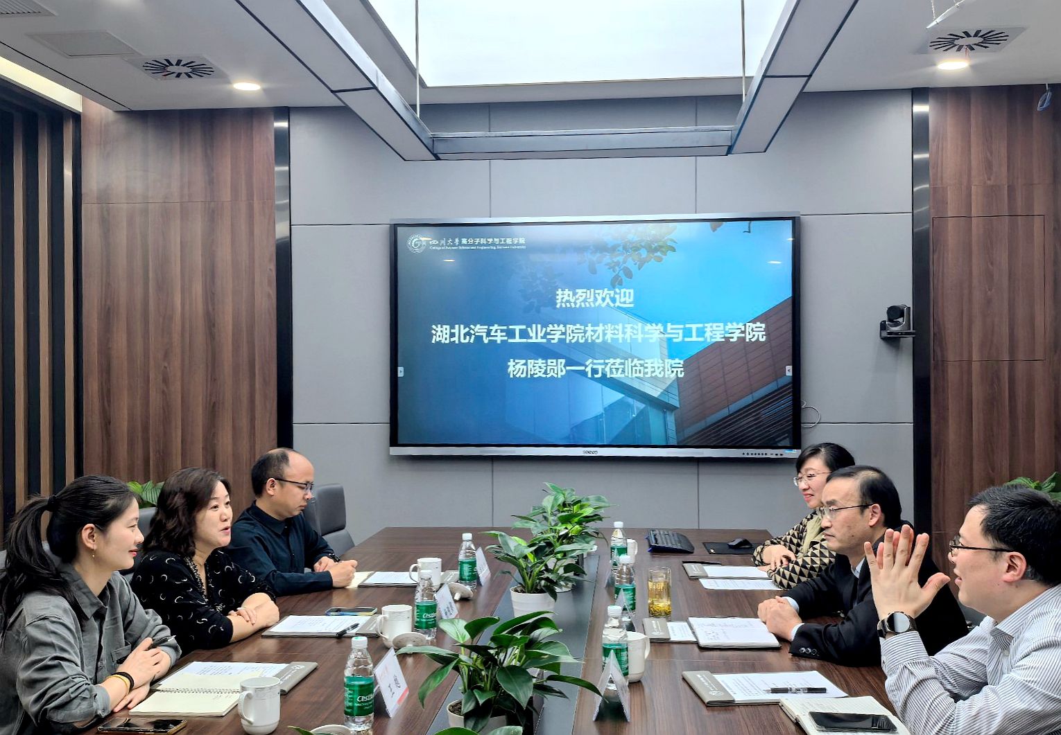 调研期间,杨陵郧一行还走访了四川大学高分子科学与工程学院,双方就学科专业建设、科研管理及科研团队建设、博士点培育等内容开展交流座谈。四川大学高分子科学与工程学院党委书记牟德富教授、副院长李艳梅副教授及高分子材料加工系系主任尹波教授参加会议。