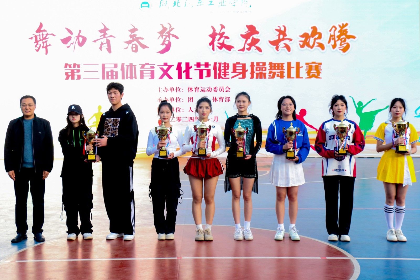 赛事落幕之际,校团委书记杜祥军为获奖单位颁奖,他高度赞扬参赛同学付出,称此次比赛是体育与艺术融合,在校庆之时,凝聚校园力量、展现青春风采,望同学们秉持运动精神,续写青春华章。这场健身舞操赛,于校庆中添活力,让青春梦在校园激情舞动,镌刻下难忘美好印记。(审稿 杜伦)