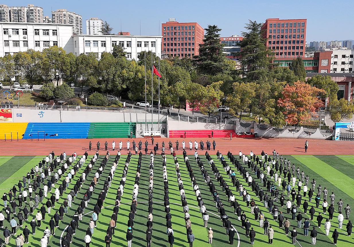 本网讯(文/图 团委)12月13日12时13分,学校在田径场组织开展南京大屠杀死难者国家公祭日升国旗、下半旗仪式。校团委、保卫处及六百余名学生代表参加。