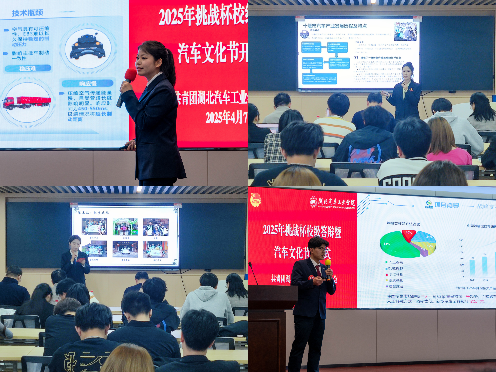 本网讯(文 李旭/图 王名熙)4月7日下午,学校2025年汽车文化节开幕式暨挑战杯校级答辩在产教大楼3楼报告厅成功举行。校团委书记杜祥军、创新创业教育学院院长陶伟、汽车工程学院副院长杨正才、校团委副书记焦建杰及部分参赛团队的指导老师参加开幕式。