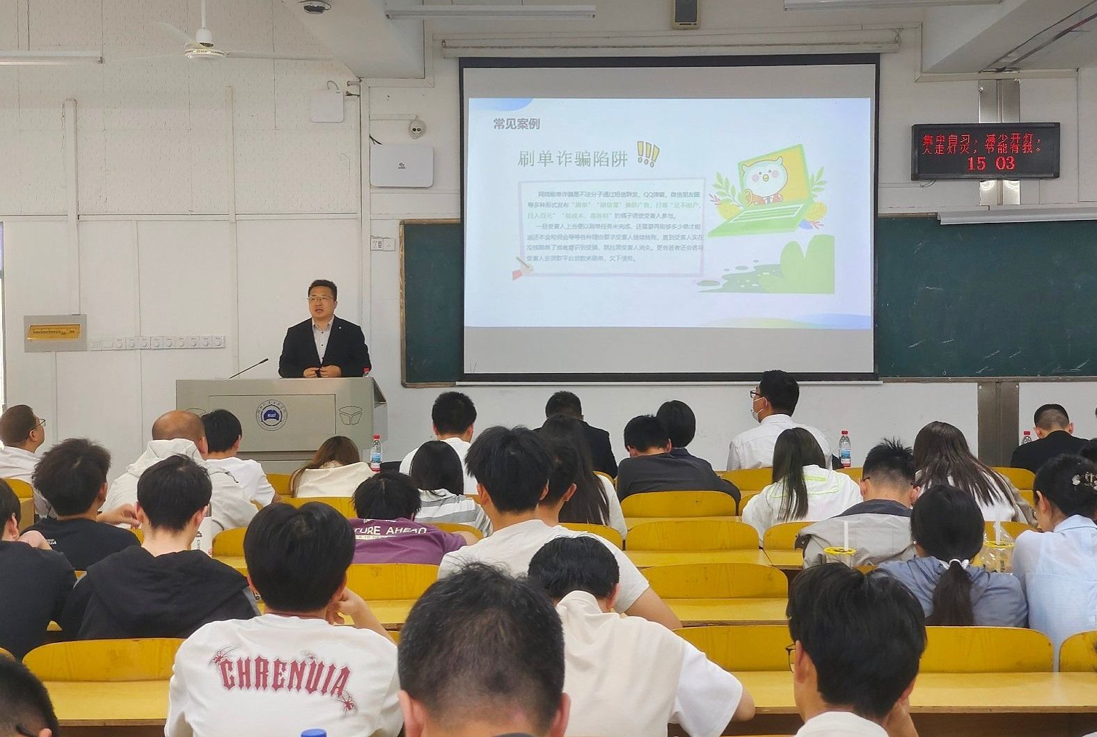 4月14日下午,校团委邀请招商银行工作人员来校举行金融安全暨反电诈宣讲,助力“无诈校园”创建。当日上午,汽车智能制造学院还在北校区举行“守护国家安全 共建平安校园”国家安全日主题教育暨“春风有信启新程 榜样领航共成长”升旗仪式。